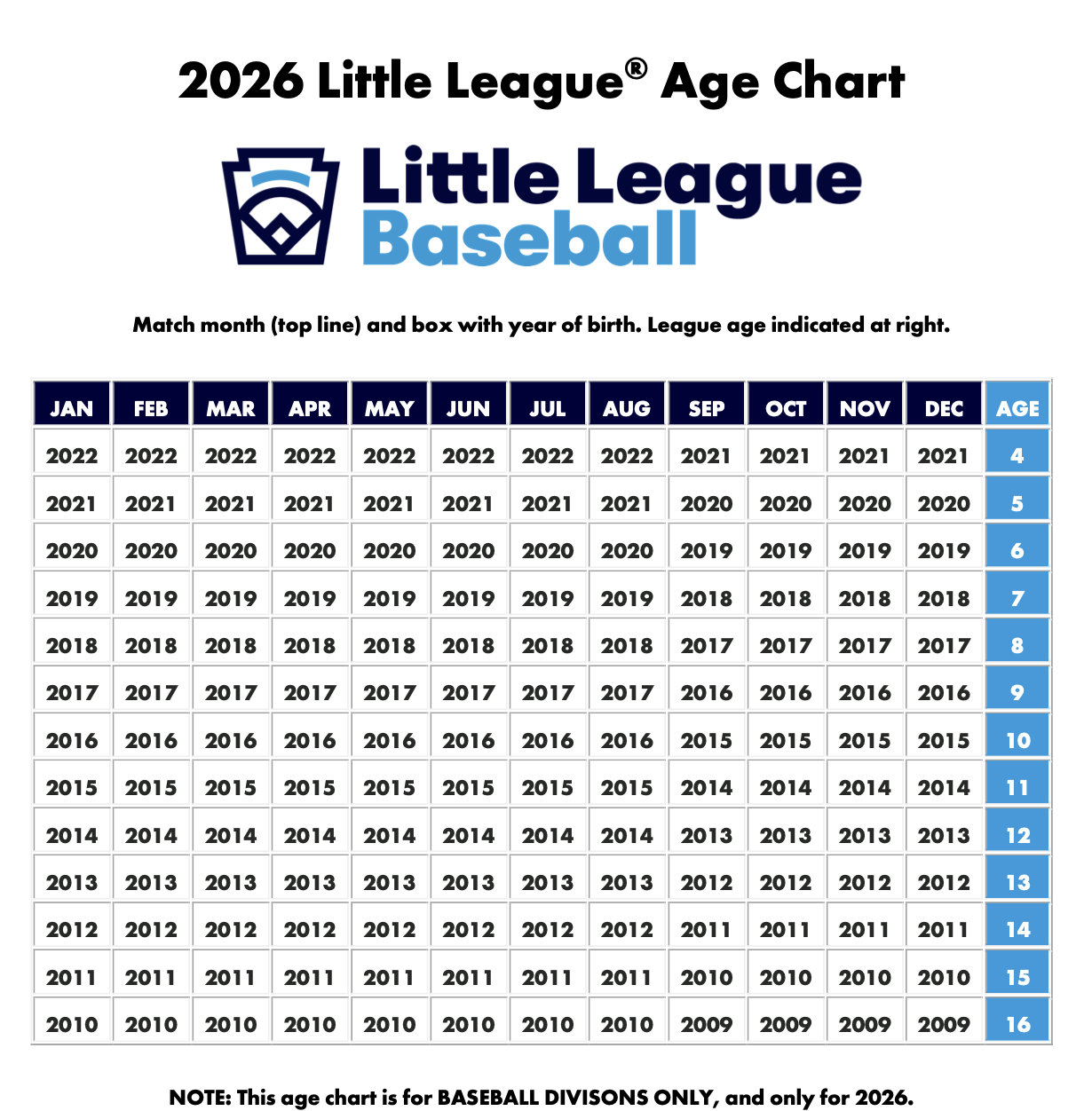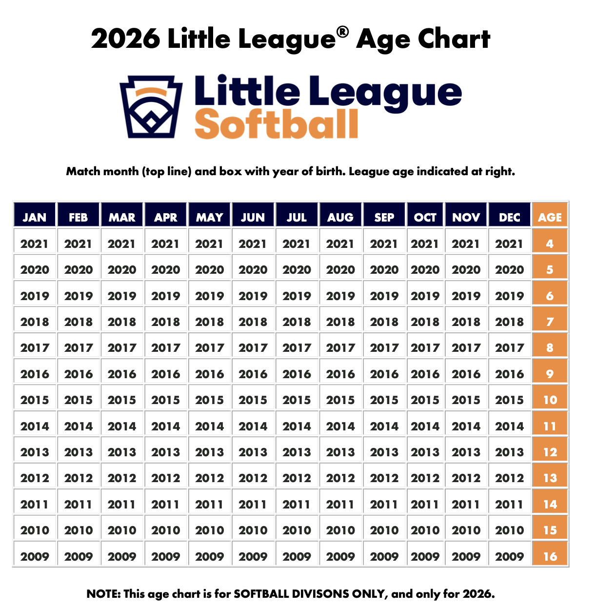 AGE CHART 2026T-BALL & BASEBALLSOFTBALL