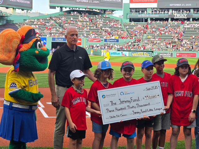 Check presentation of $330,000 to the Jimmy Fund from MA Little League at Fenway