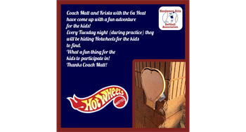 (during their practice) they will be hiding Hot Wheels for the kids to find. (Matt has a business). What a fun thing for the kids to participate in. Thank you MATT!!!