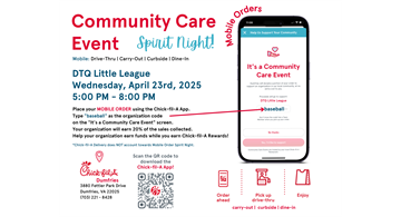 SPIRIT NIGHT! DTQ Little League Wednesday, April 23rd, 2025 5:00 PM - 8:00 PM.
