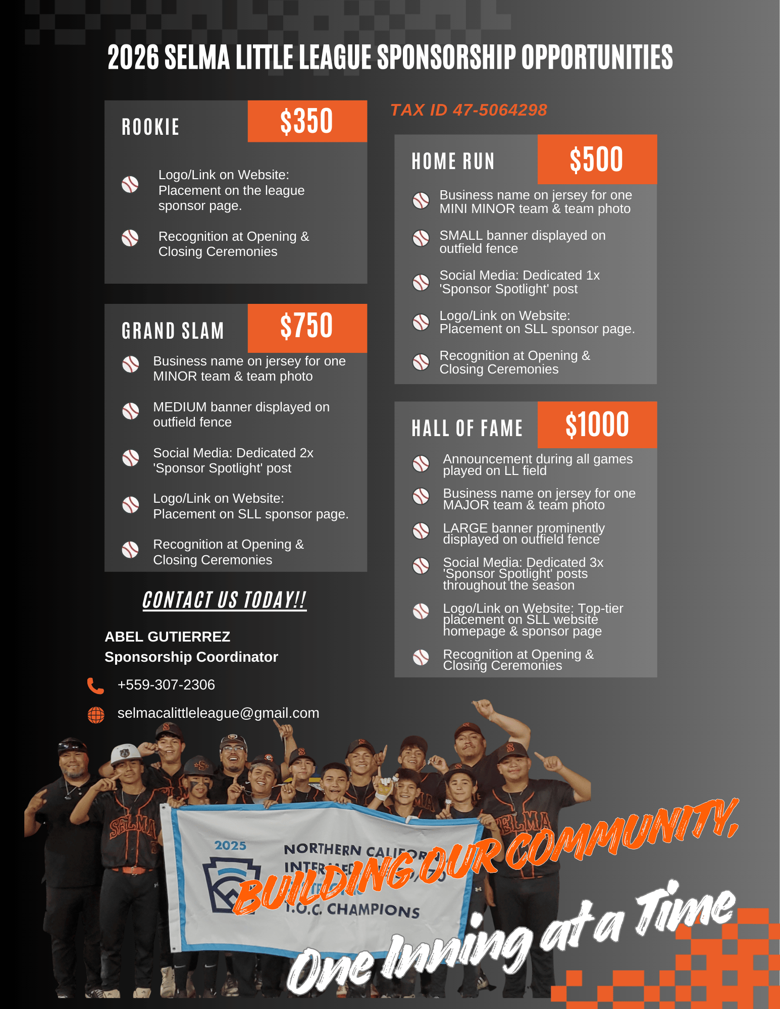 Sponsor Form and Checks can be mailed to: Selma Little League P.O. Box 429, Selma, CA 93662