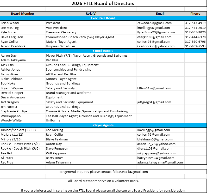 Franklin Township Little League PO BOX 39051, 4009 S Bazil AveIndianapolis, Indiana 46239