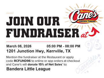 Bandera County Little League Bandera Sports Complex C/O Little League, 325 Optimist Way - PO BOX 297Bandera, Texas 78003