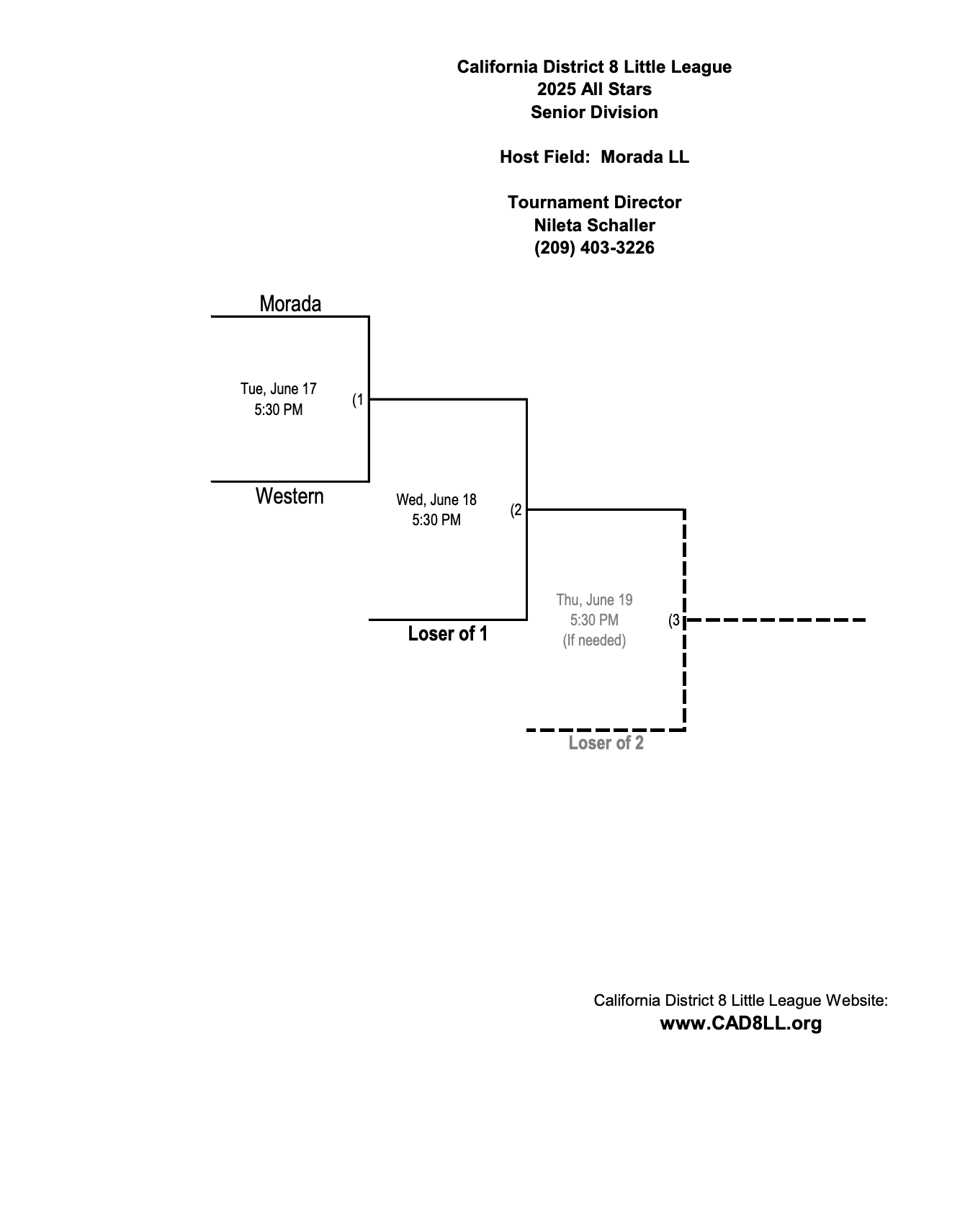 Each division begins with District 8 All Star tournaments. Winners at this level can advance through the Little League International Tournament pathway, which may include: