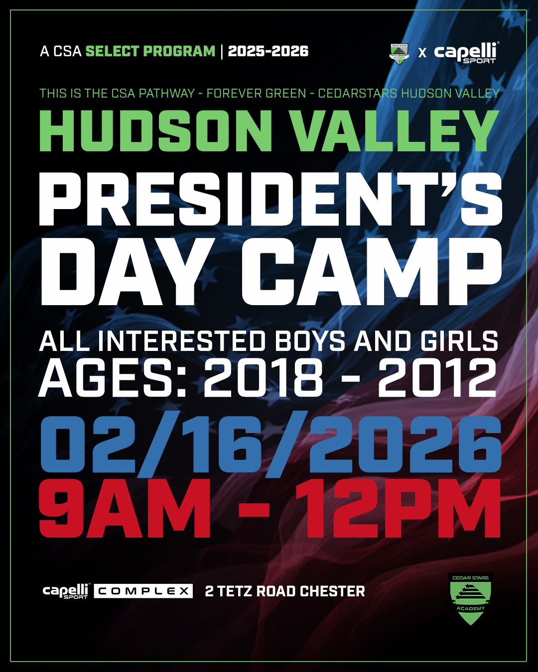 CSA Hudson Valley are delighted to host our 2026 President's Day Soccer Camp.