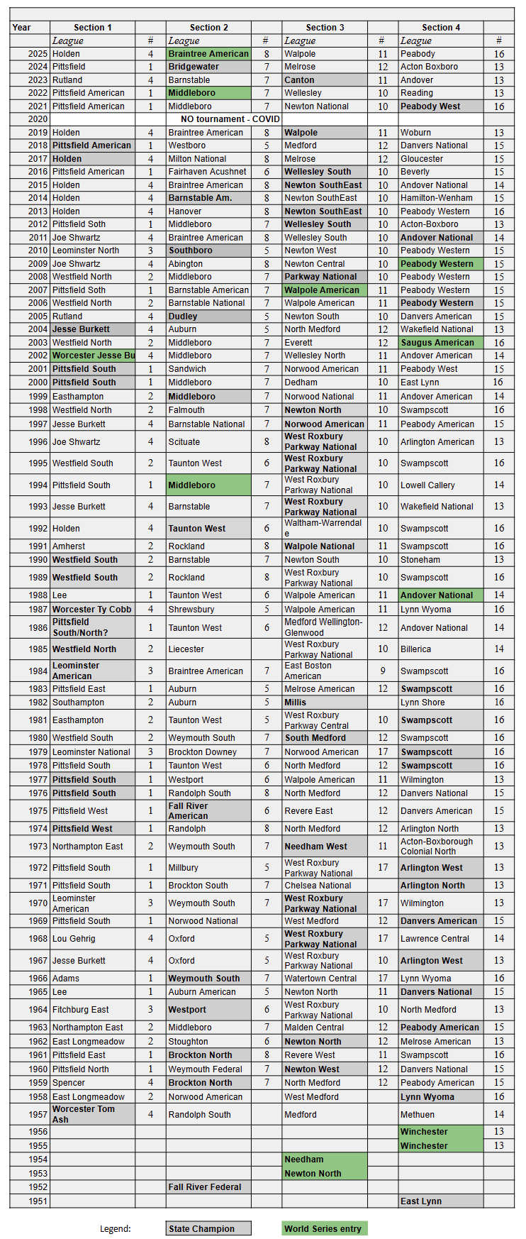 Baseball State Champions 1951-Present