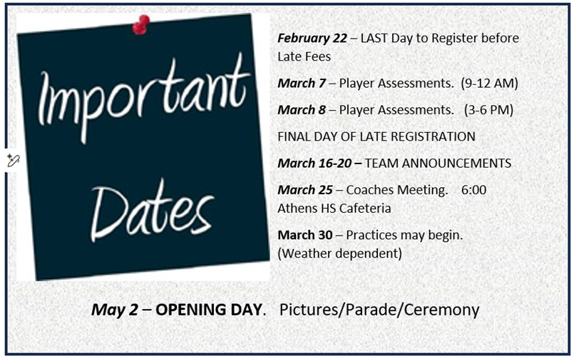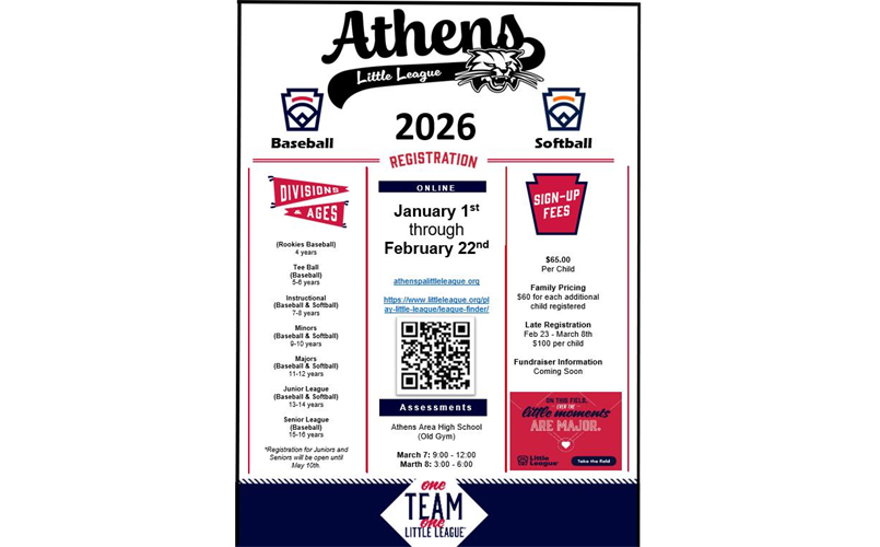 Please click on Registration link on website banner above or through Athens Little League Facebook page to register for the 2026 season!