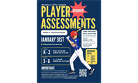 Players Assessments will be held on the following dates:February 8 - League age 6-9 year olds 4:30pm check in ( Tee Ball participants do not need to attend)February 9 - League age 10-12 year olds 4:30pm check inPlayers must have a...